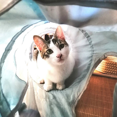 モモくんと兄弟で保護されたとってもかわいくてお利口な女の子です。警戒心がとても強く怖がりなので心を開いてくれるまで時間がかかりましたが、今ではナデナデとお尻トントンが大好きです。他の猫のことも好きなので、先住猫さんとも仲良く過ごすことができると思います。しぐさがとても可愛く皆を笑顔にしてくれます。